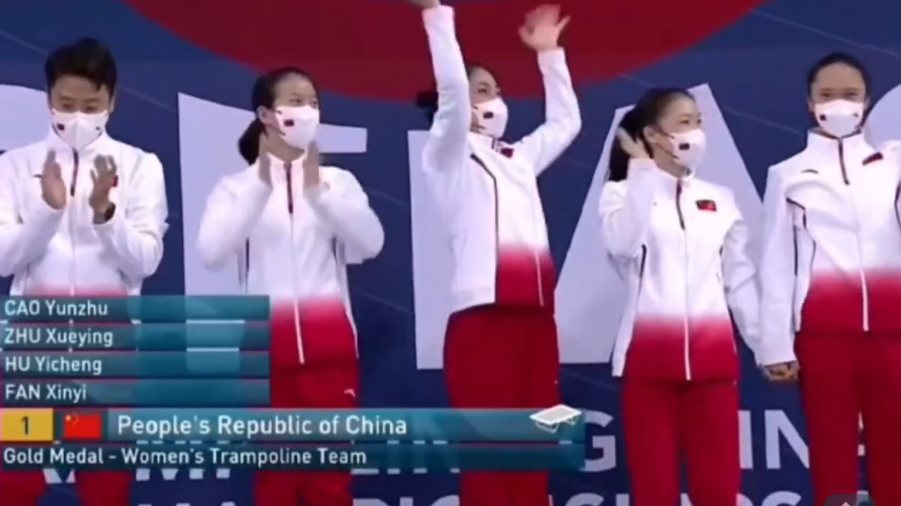 北京时间11月19日,2022年蹦床世锦赛在保加利亚索菲亚结束第三个比赛日的争夺。中国队派出曹云珠、朱雪莹、胡译乘三位选手,分别得到56.070分、56.520分和56.200分,以15个积分获得女子团体冠军。