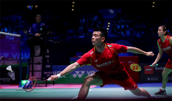 混双比赛,头号种子郑思维/黄雅琼21比6、21比11轻取美国组合邱恺翔/珍妮·盖。