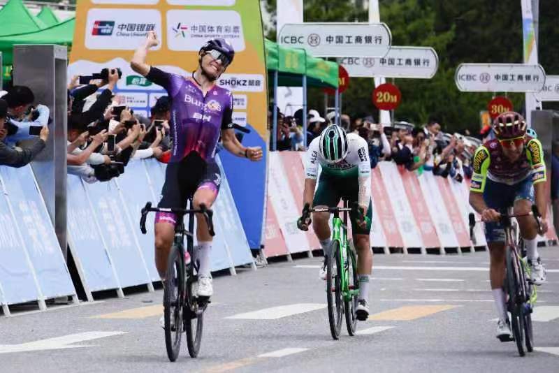 2024“中国工商银行杯”环青海湖国际公路自行车赛的车轮8日驶离西宁,进入山路战场。经过平路赛段西宁绕圈赛,各车队迎来环湖赛第二赛段多巴至互助的比赛,共有150名车手参与比拼,最终来自西班牙布尔戈斯BH车队的埃里克·法贡德斯获得冠军。