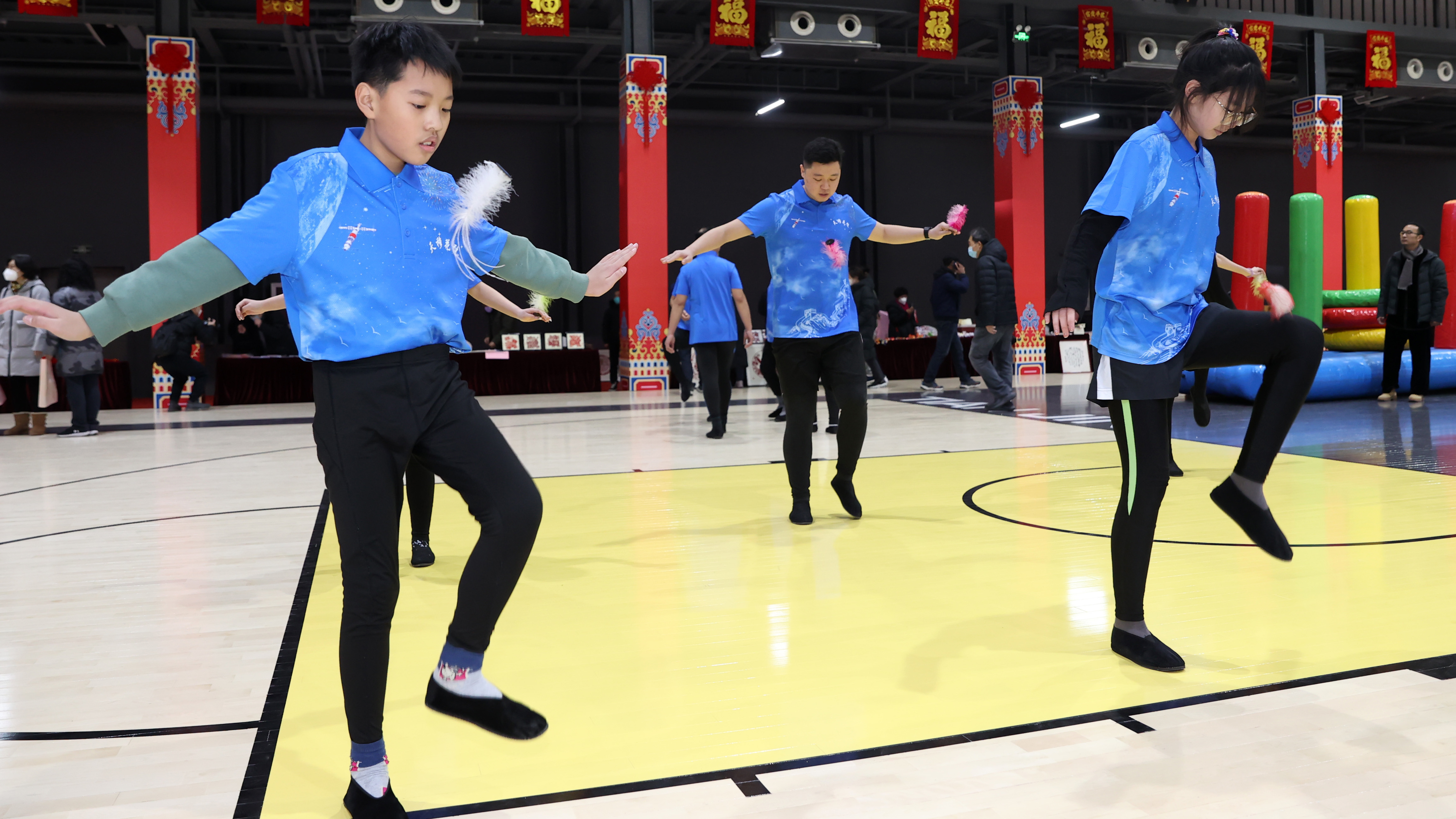 腊月二十八,2023年天津市健身大拜年主题系列活动启动,现场数千名健身爱好者参与,天津市各区分会场累计参与人数过万。 在启动仪式现场,威风灵动的龙狮在与会嘉宾点睛后龙腾狮跃。在室外场地,大鼓、高跷、龙狮、足球、飞盘项目齐上阵。室内排球之城、冰雪运动、篮球主题活动馆的健身指导、专项技能展示、表演赛丰富多彩,趣味运动、传统运动、新兴时尚运动呈现多元化。