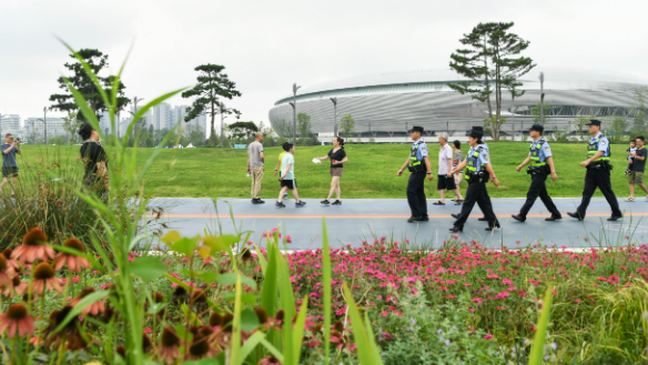 “老师,加油!”在孩子们的欢呼声中,北京市中小学体育教师跑团的数十名老师奔跑在清华附中广华学校操场上,他们身形矫健,向学生展示一千米竞速技巧。3分17秒,垂杨柳中心小学景园分校体育教师张鑫率先冲过终点,赢得现场学生和家长的喝彩。
