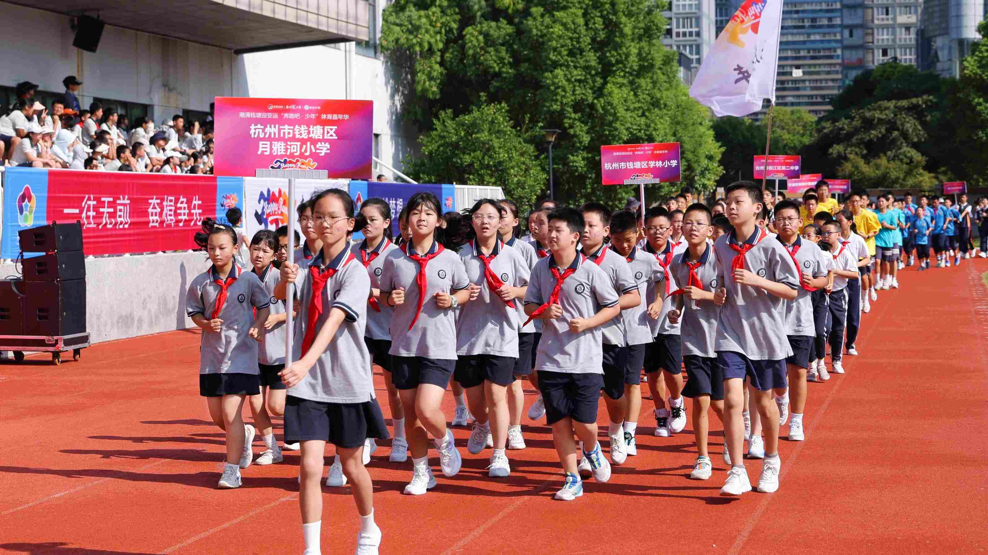 据了解,“365健康跑”是杭州市钱塘区教育部门为培养“钱塘健康少年”推出的中小学体育项目,倡导师生天天坚持跑步锻炼,力争每年跑足365千米,目前已经有8万多名师生、家长参与其中。