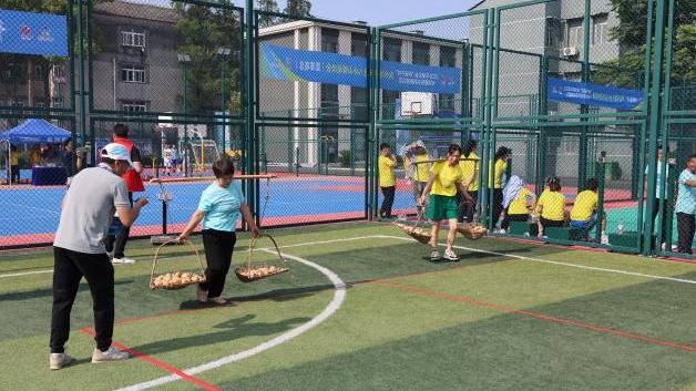 最具“八岭山风味”的乡镇运动会在杨场社区广场和镇全民健身运动中心开赛。“挑扁担接力”赛场,村民肩挑装载着5公斤农产品的扁担,健步如飞,在加油声中奋力冲刺,那熟悉的扁担,不再是田间劳作的工具,而是赛场上翻飞的“接力棒”。