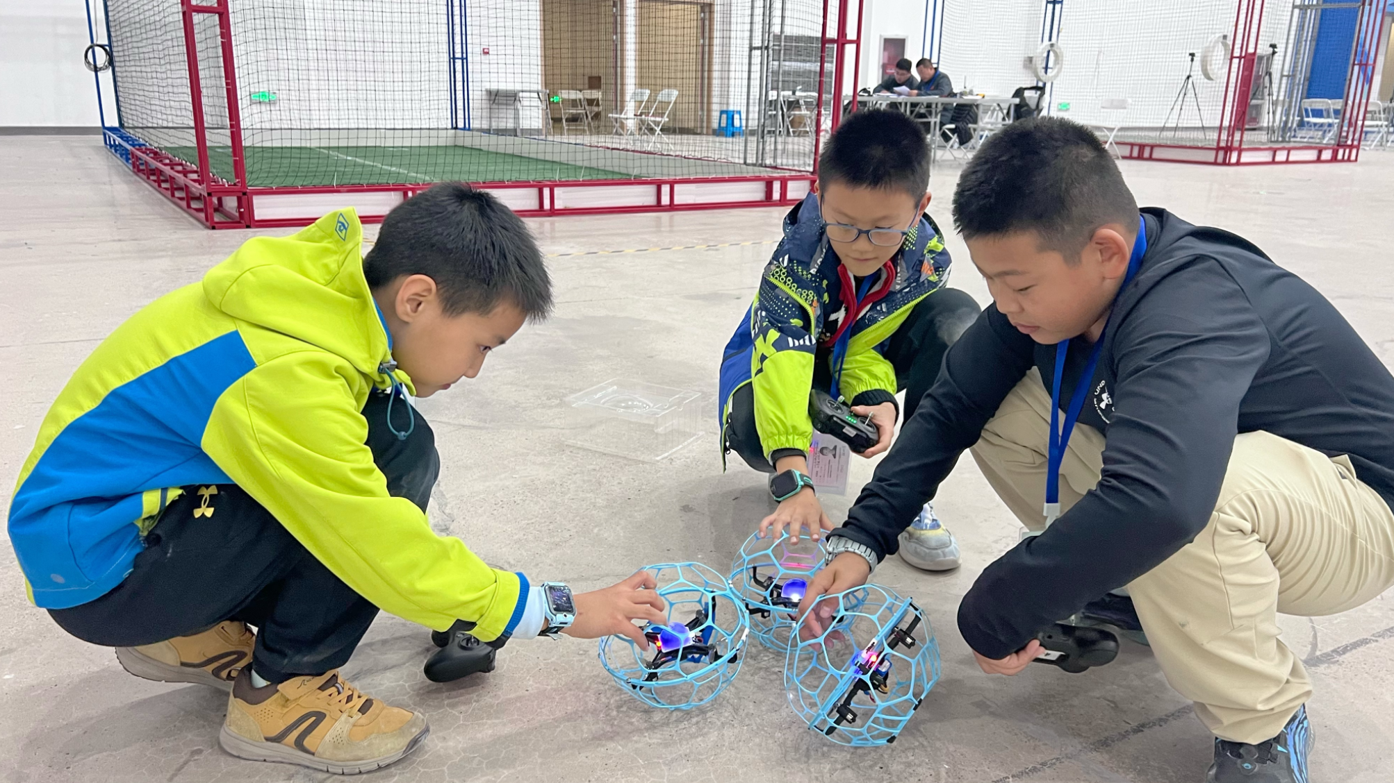 “这不是一个人的比赛,得三个人心连心才能赢。”团队中他的任务是守护“空中防线”,“无人机足球很有乐趣,难点在于得把无人机稳稳悬停在球门两边,停在中间很容易被对方的进攻机撞进球门。”王晟全说。